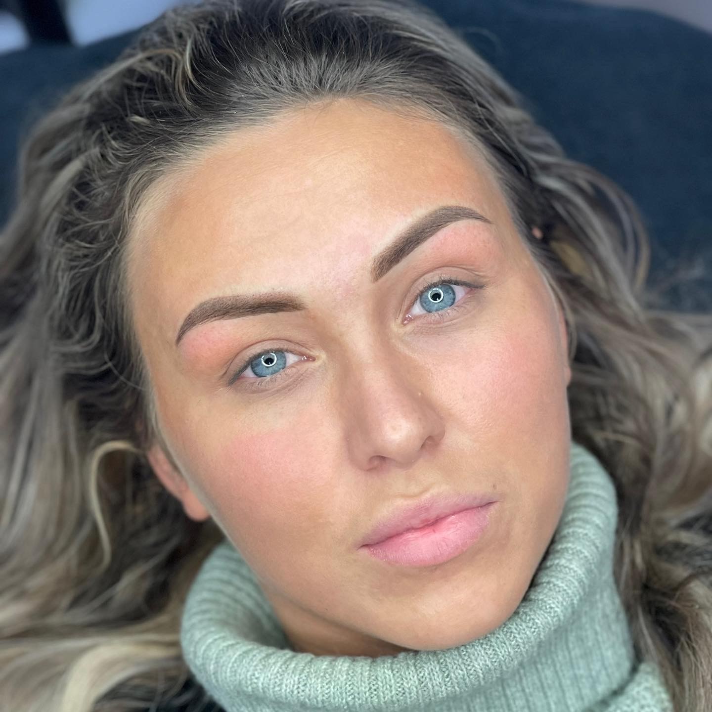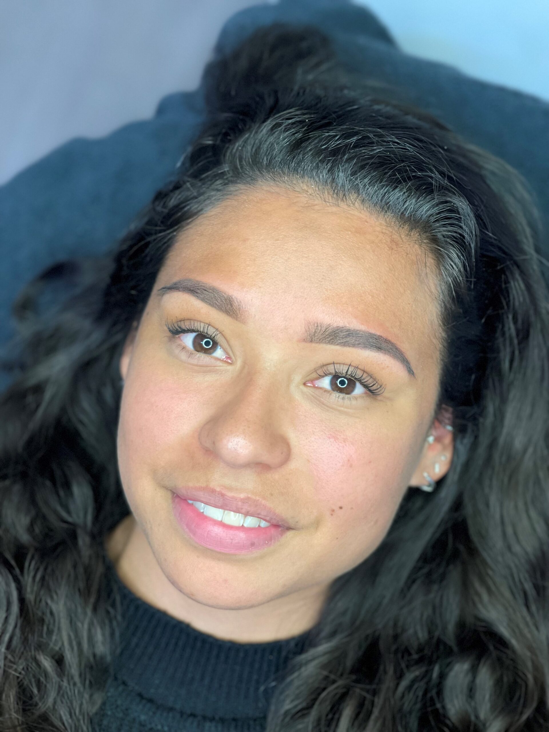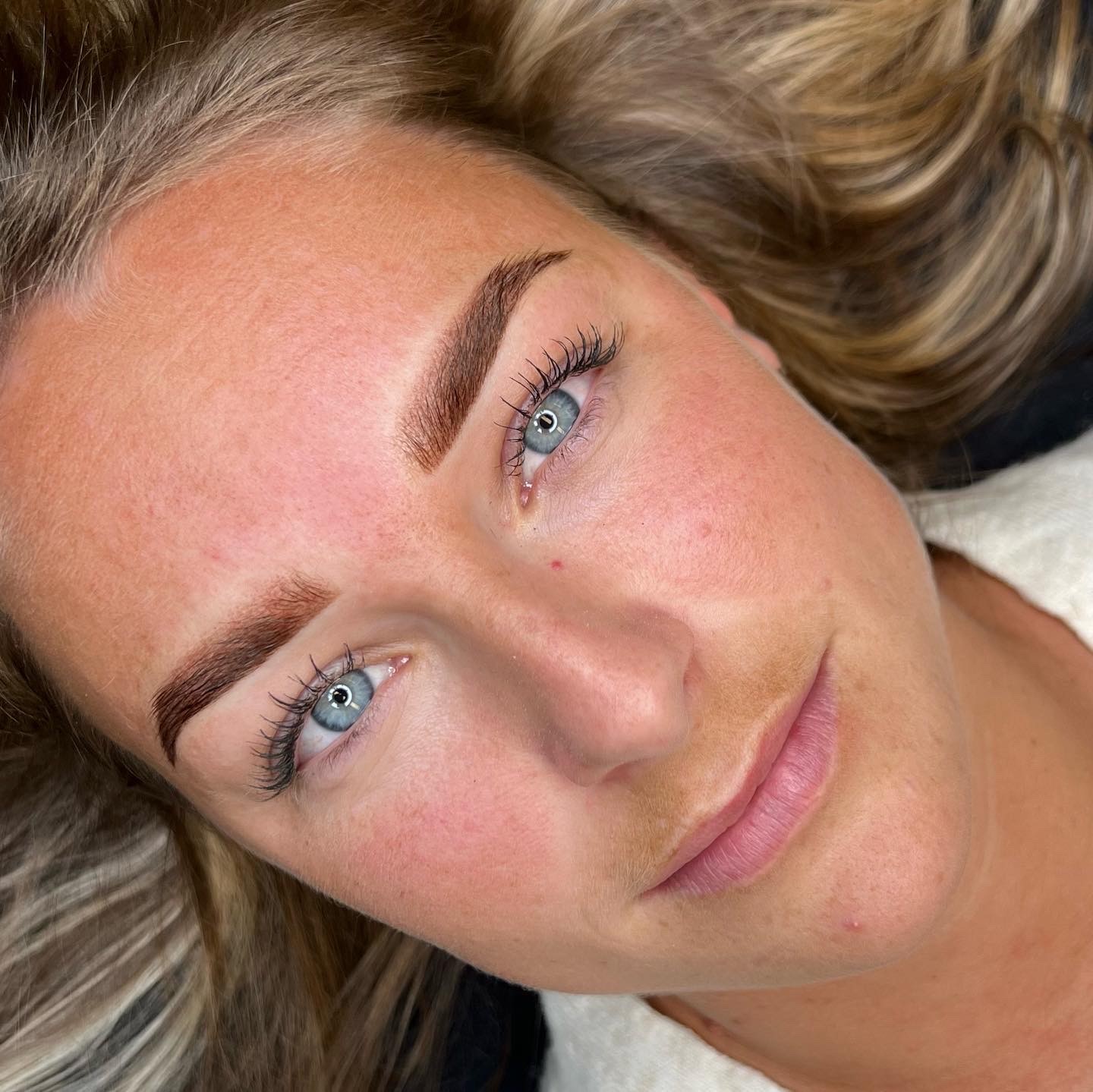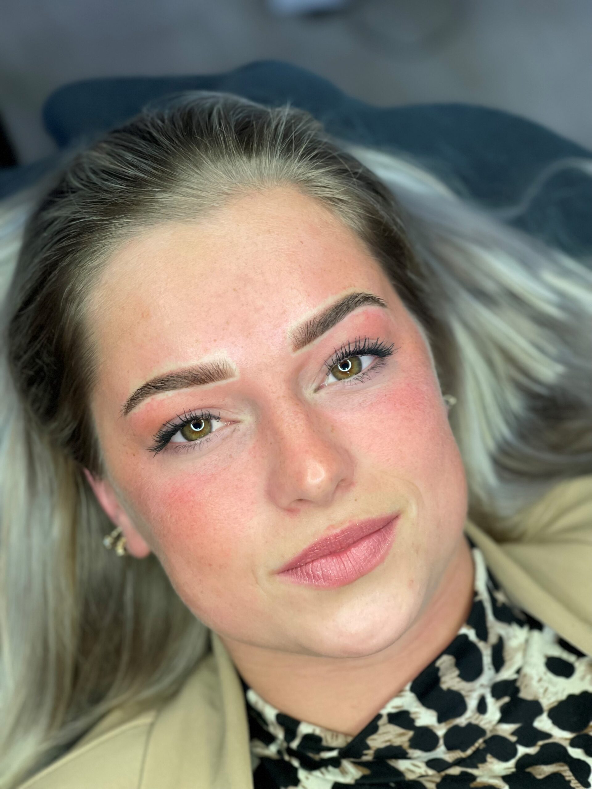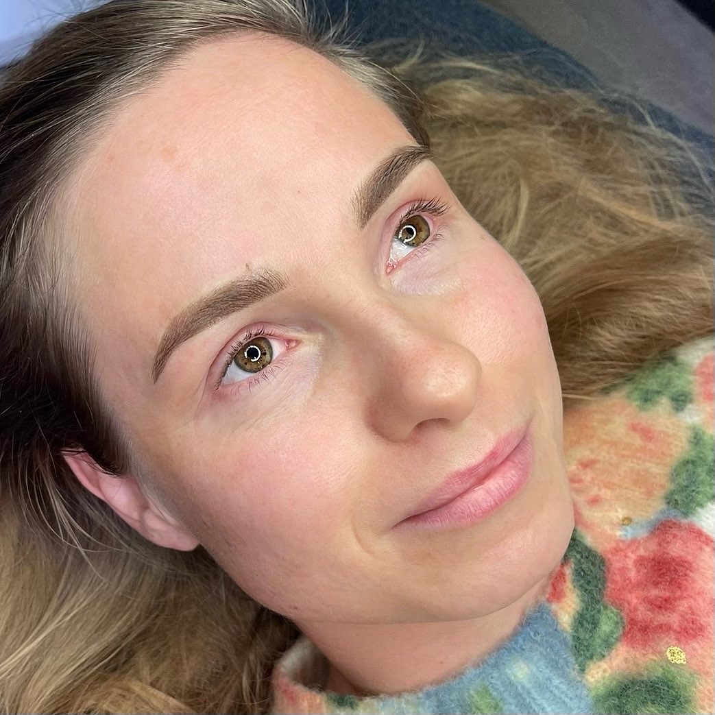 + De wenkbrauwen worden behandeld met een nazorgproduct.